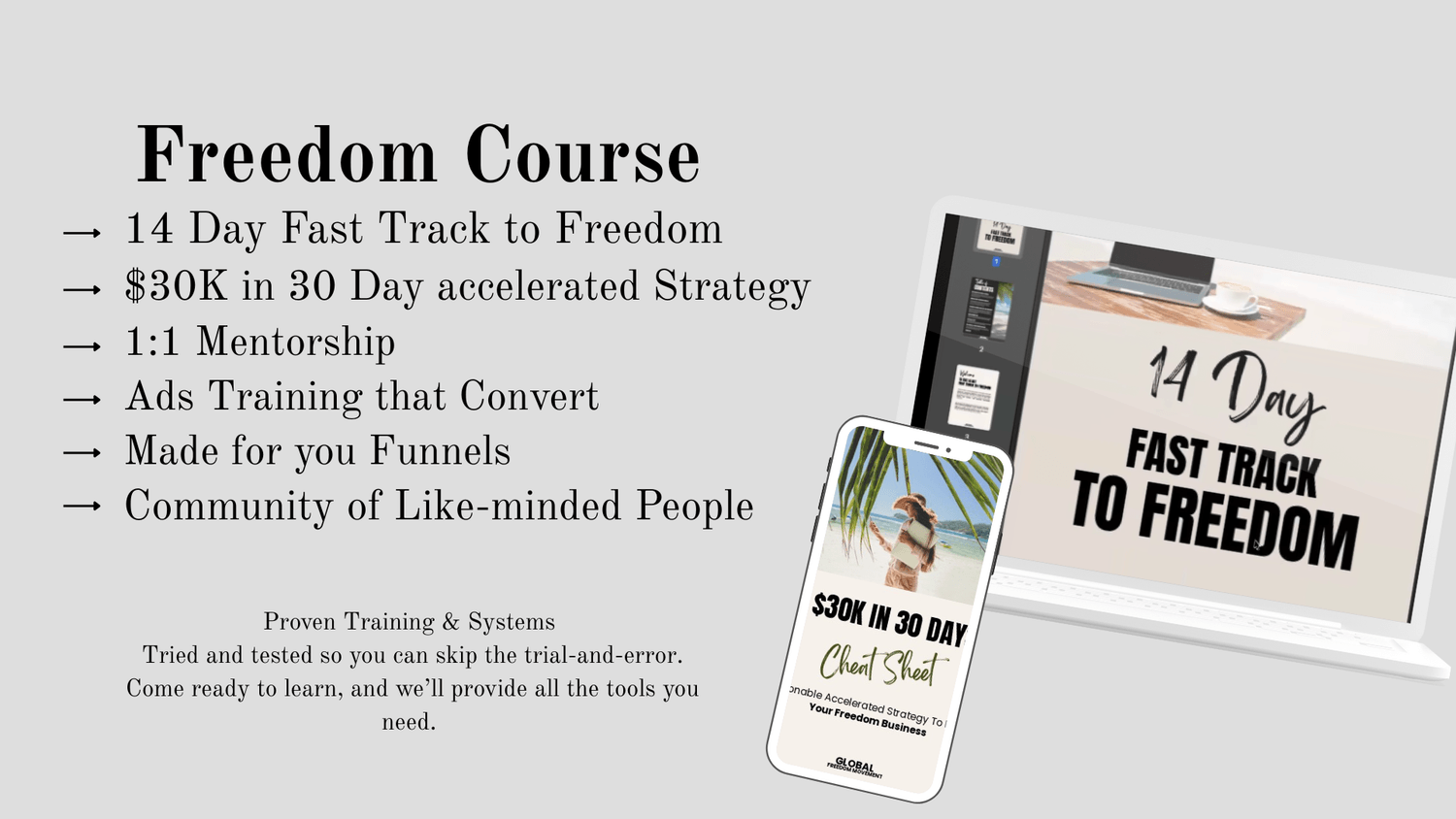 We provide all the training, Mentorship, 1:1 Coaching and Systems for free